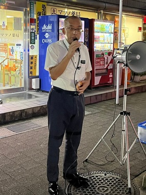 そして2日目の最後は、19:25から19:50頃まで、朝の街頭活動を行った阪急西山天王山駅西改札口にて、帰宅される皆さまに夜の街頭活動をさせていただきました。