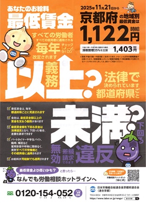 11/21(金)から京都府の地域別最低賃金は、時給1,1228円となります。