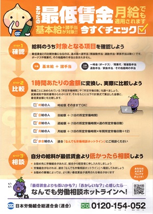 時給換算で地域別賃金を下回っている方や、突然次の契約はしないと言われた方、未払い賃金がある方、残業代が払われていない方、職場での様々なハラスメントや労働時間や有給休暇など、賃金・労働時間・休暇などの労働条件がおかしいと思われることがある方は、ぜひ連合の「なんでも労働相談ダイヤル」0120-154-052に電話して相談してください。