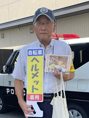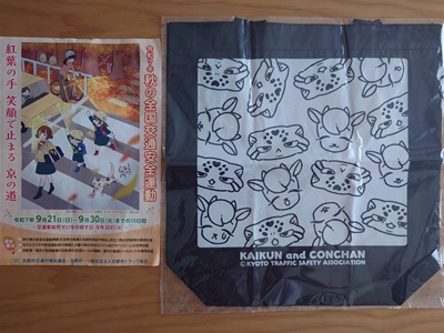 9/19(金)に長岡京市役所前のアゼリア通りにて行われた、「令和7年秋の全国交通安全運動街頭啓発活動」に乙訓交通安全協会の一員として参加し、通行される皆さまに啓発グッズを配らせていただきました。