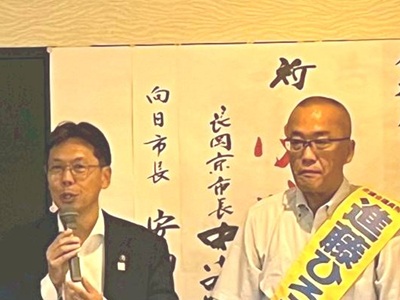 1日目の今日は、9:55から10:20頃まで選挙事務所内で出発式を行い、中小路健吾長岡京市長、原敏之連合京都会長、中野洋一国民民主党京都府連会長など5人の来賓の方々から、それぞれ選挙へ向けた激励のご挨拶をいただきました。