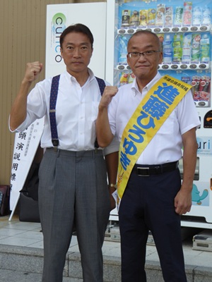その間、9:00から11:30までは徳本修司大山崎町議会議員、12:30から14:00までは森田充彦根市議会議員と先成俊士草津市議会議員、14:00から17:15までは片岡英晃綾部市議会議員に街宣車に同乗いただき、市内数カ所においてスポット演説を行いました。